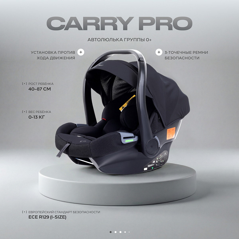 Детское автокресло RANT CARRY PRO (40-87 см) покорит вас: возможностью установки на базу ISOFIX ; возможностью установки на каркас коляски + адаптеры (модели Zoom, Tilda, Nexus); инновационной формой капора; регулировкой подголовника по росту; мягкими комфортными вкладышами, вынимаемыми по мере роста крохи; тактильно приятными гипоаллергенными чехлами из премиум-ткани.