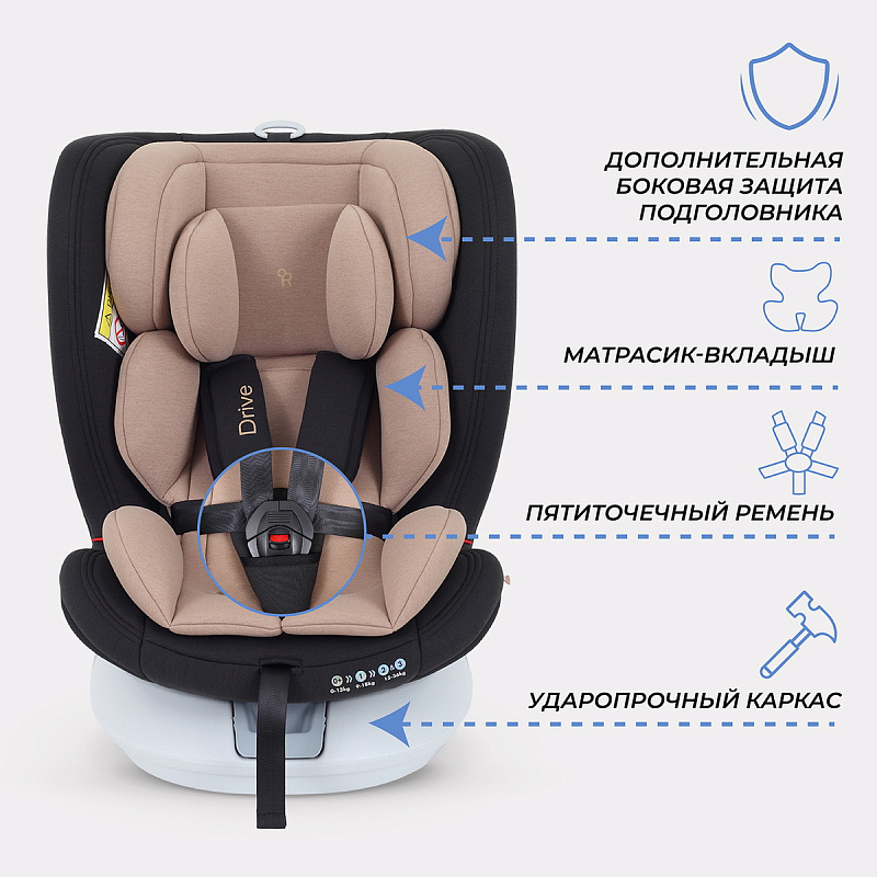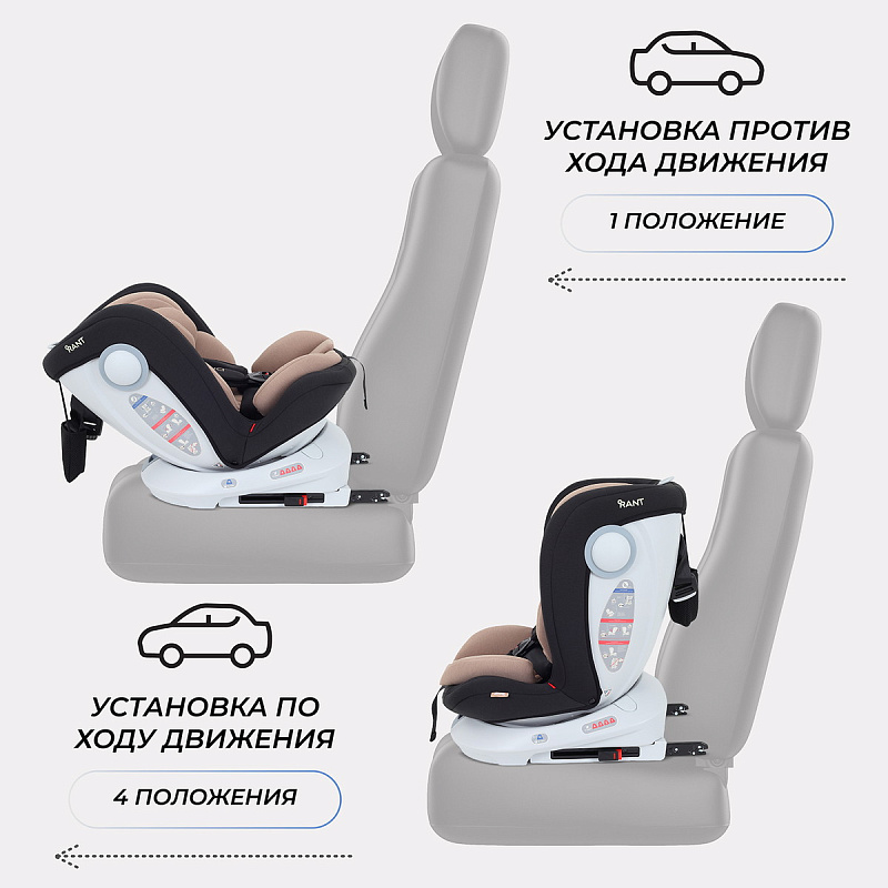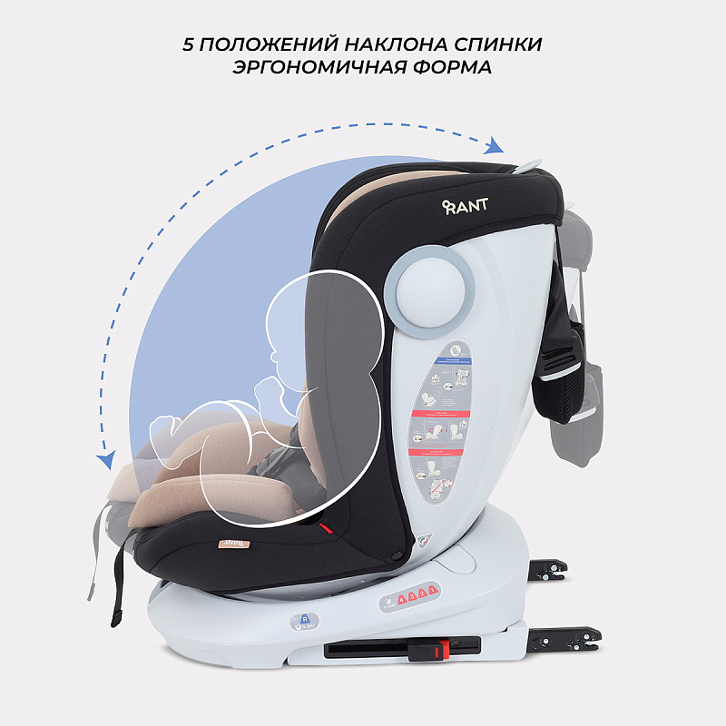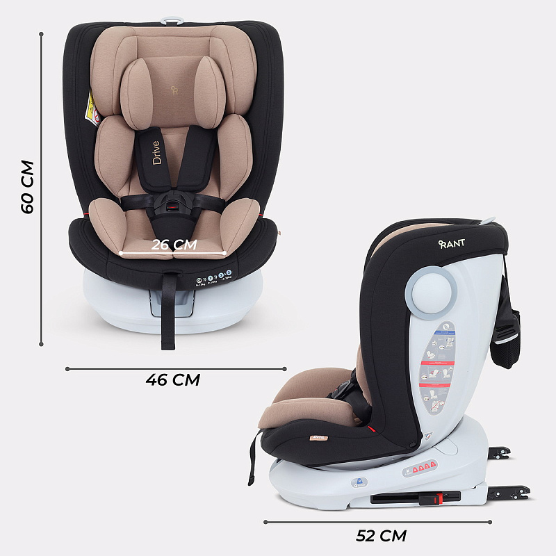 Автокресло rant drive растет вместе с ребенком. Подходит детям с рождения и до 12 лет. Главная особенность автокресла в уникальной поворотной платформе, которую достаточно один раз надежно зафиксировать с помощью isofix и далее спокойно поворачивать на все 360 градусов. Таким образом, облегчается смена положения кресла - по ходу/против хода; значительно проще посадить/достать малыша, ведь кресло можно развернуть боком, а затем выставить либо по ходу, либо против хода движения.