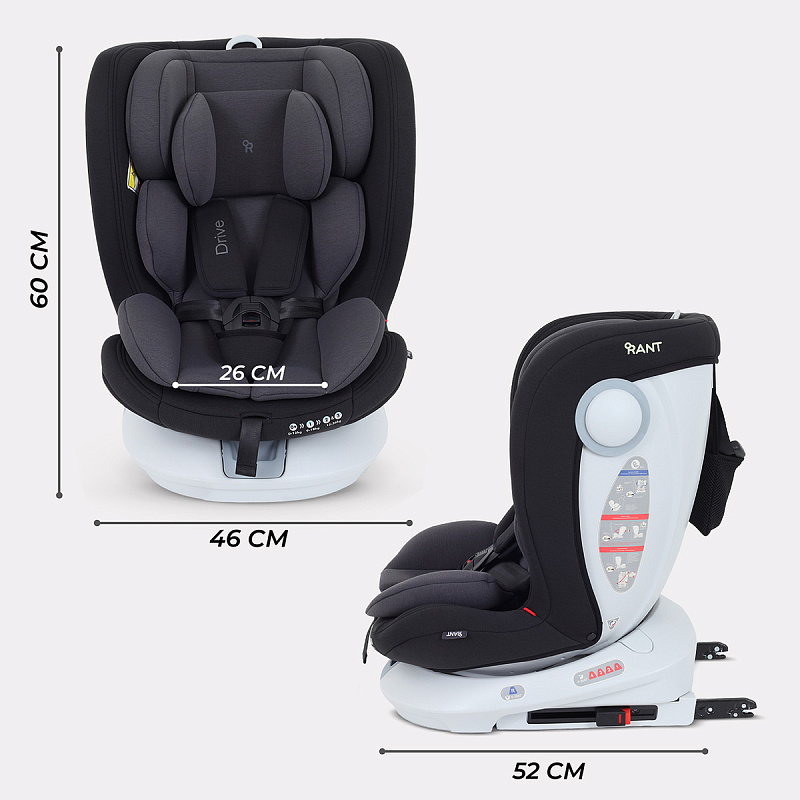 Автокресло rant drive растет вместе с ребенком. Подходит детям с рождения и до 12 лет. Главная особенность автокресла в уникальной поворотной платформе, которую достаточно один раз надежно зафиксировать с помощью isofix и далее спокойно поворачивать на все 360 градусов. Таким образом, облегчается смена положения кресла - по ходу/против хода; значительно проще посадить/достать малыша, ведь кресло можно развернуть боком, а затем выставить либо по ходу, либо против хода движения.