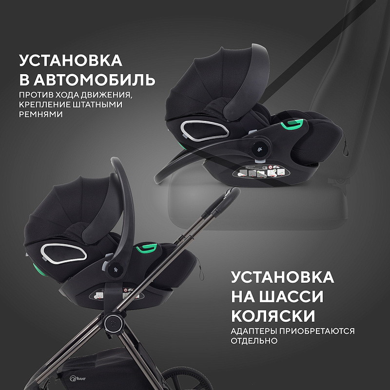 автолюльку можно закрепить на базе коляски с помощью адаптеров (приобретаются отдельно)