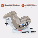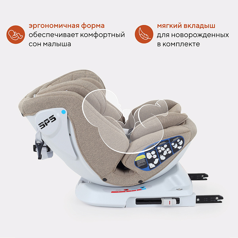 Новая разработка - автокресло для всех групп (0/1/2/3), которое обеспечит безопасные и комфортные поездки вашему ребенку. В комплектацию входит анатомическая подушка-вкладыш, необходимая крохе от 0 до 6 месяцев. С помощью этого аксессуара чаша автокресла выравнивается, комфорт достигается благодаря уменьшению угла наклона внутренней части автокресла. Создается практически ровная поверхность для новорожденного. Уникальность модели так же в поворотном блоке (с помощью которого автокресло спокойно вращается вокруг своей оси, поэтому его удобно установить как по ходу движения, так и против). Еще одна особенность - потрясающая ткань чехлов. Специальная пропитка не даст впитаться влаге и грязи, при этом на ощупь чехлы невероятно приятные. Кресло имеет большие внутренние размеры, а для комфорта малышей предусмотрен специальный вкладыш и мягкий подголовник для дополнительной защиты головы и шеи. 5-ти точечные ремни безопасности регулируются по высоте вместе с подголовником. Модель имеет несколько наклонов спинки, в том числе почти горизонтальное положение для грудничков. Вся обивка легко снимается для стирки.