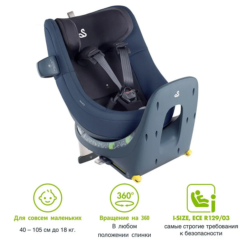 Swandoo Marie i-Size поворотное автокресло на 360 градусов. Соответствует новым стандартам безопасности I-SizeR129 I-size обеспечивающие максимальную безопасность и невероятный комфорт ребенку с рождения до 5 лет. Благодаря возможности вращения чаши на 360 градусов сиденье автокресла можно устанавливать как против, так и по направлению движения автомобиля.