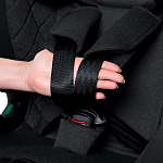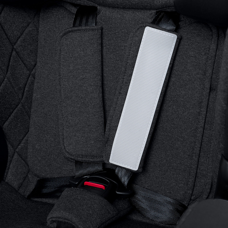 - Пятиточечные ремни безопасности с мягкими противоскользящими накладками надежно фиксируют ребенка, обеспечивая ему безопасность и комфорт во время каждой поездки.