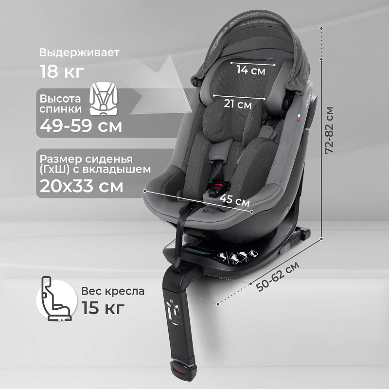 Размер автокресла (ДхШхВ)50-62х45х72-82см