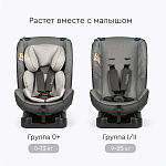 Для малышей с рождения (гр. 0+) автокресло устанавливается против хода движения автомобиля. Для гр. I/II (13-25 кг) кресло устанавливается по ходу движения. Крепится штатным ремнем автомобиля.