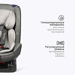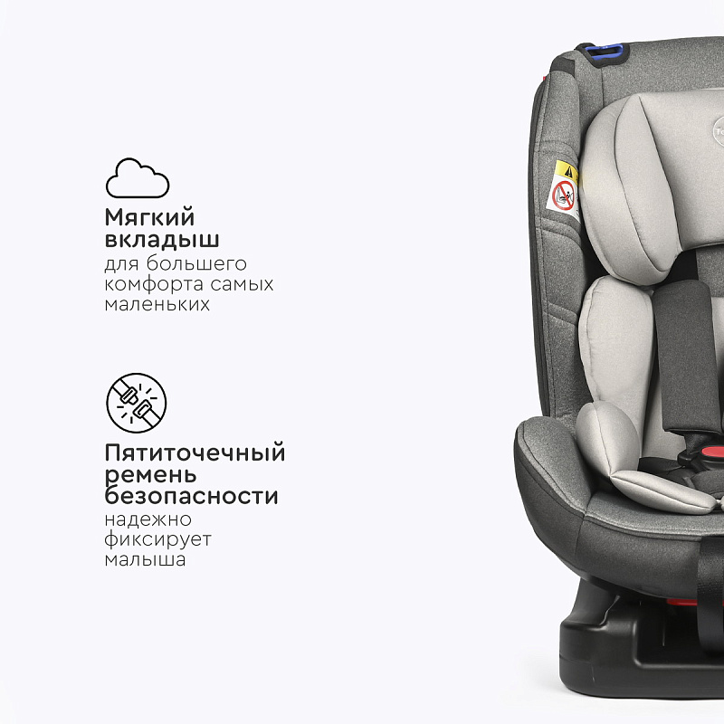 Мягкий подголовник, вкладыш, специальная ортопедическая спинка и накладки внутренних ремней повышают уровень комфорта во время поездки.