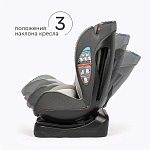 Благодаря особой анатомической форме сидения и системе наклона кресла (3 положения), ребенок находится в правильном положении во время поездки, обеспечивается равномерная нагрузка на позвоночник. Особая форма подголовника и увеличенные боковые части кресла обеспечивают защиту ребенка в случае бокового удара.