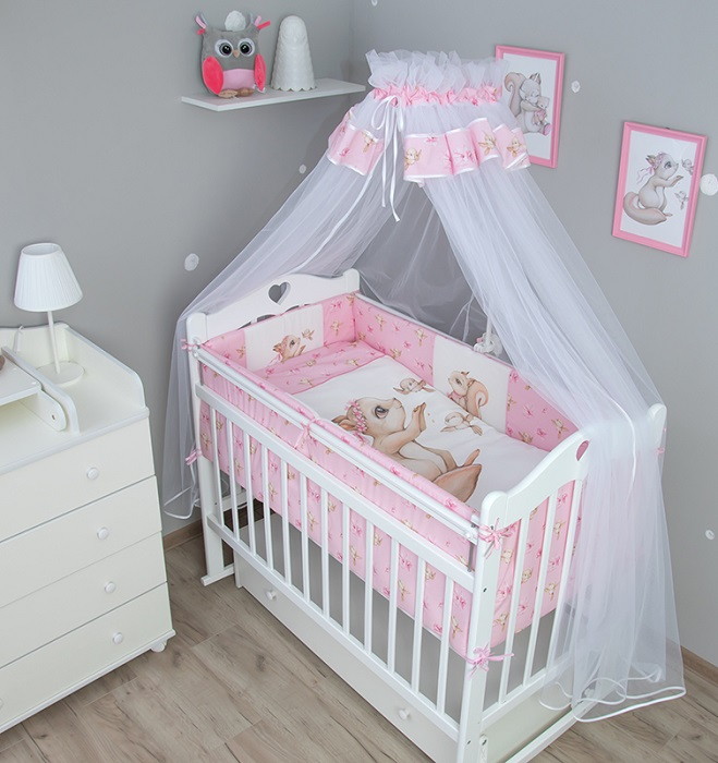 Балдахин на детской кроватке создает для малыша чувство защищенности, образуя уютный закрытый уголок. При регулярной стирке, балдахин служит дополнительной защитой от пыли, которая может попасть в кроватку. Ткань хорошо пропускает воздух и не препятствует воздухообмену. Также балдахин совместно с бортиками защитит малыша от сильных потоков воздуха, например, от сквозняка или кондиционера. В летний период балдахин может стать дополнительной защитой от назойливых насекомых. А тем, кто имеет дома животных, балдахин просто необходим. Он защитит малыша от излишнего любопытства домашних питомцев, а заодно и от проникновения шерсти в детскую кроватку.