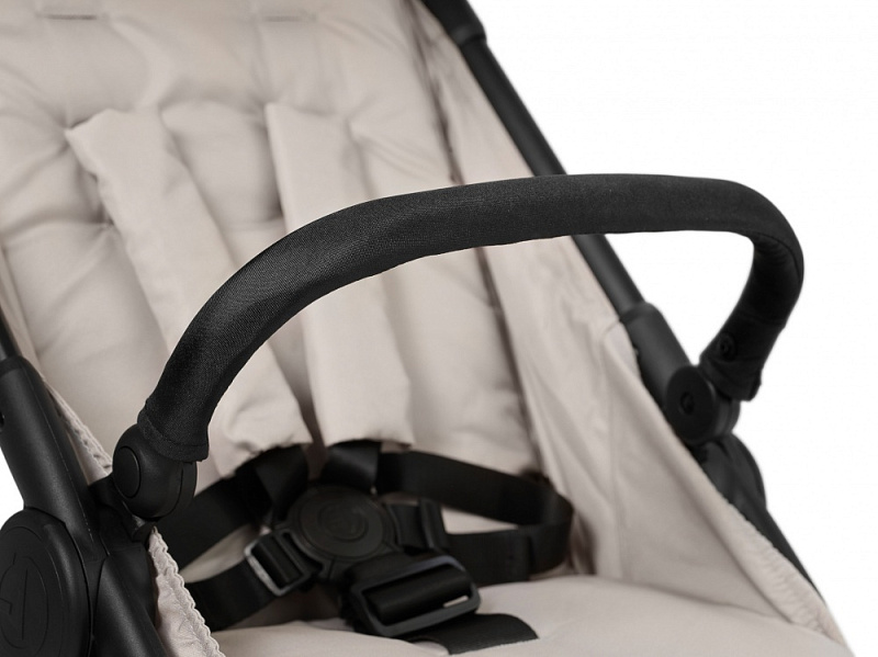 Положение бампера можно отрегулировать так, чтобы ребенку было удобно за него держаться. А еще его легко установить - нужно просто нажать на него с двух сторон при установке на коляску до щелчка. Когда вы складываете коляску, его вовсе не обязательно снимать.