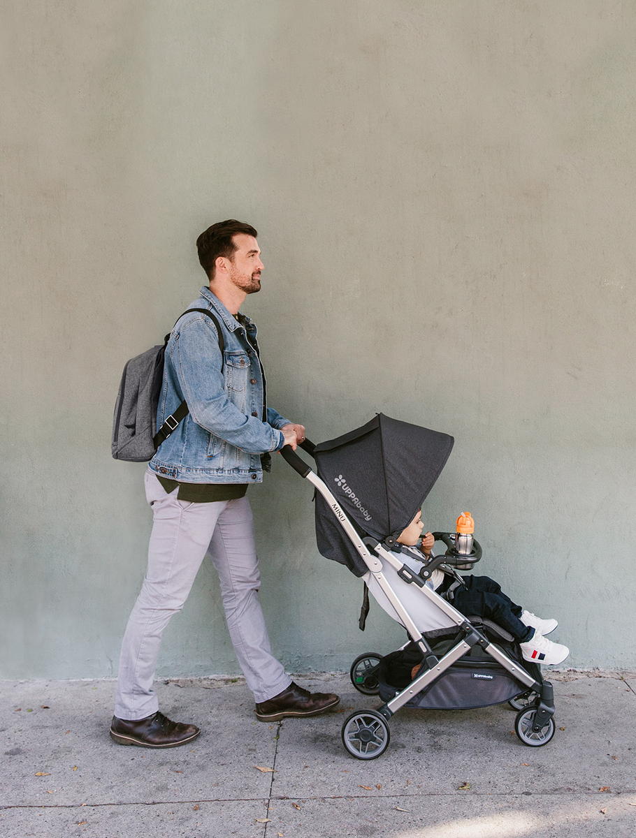 Удобный бампер-столик для прогулочной коляски MINU с подстаканником и секцией для еды сделает ваши прогулки с малышом еще более комфортными.