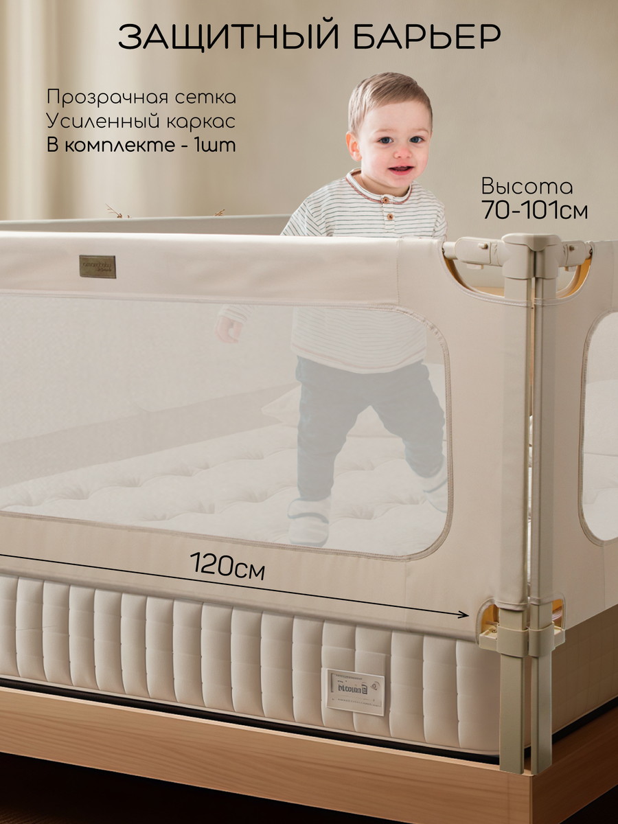 Барьер для кровати Amarobaby Caveo — безопасность и комфорт для вашего малыша! Защитите ребенка от случайного падения с кровати с надежным детским барьером Amarobaby Caveo — идеальным решением для родителей, которые ценят простоту, качество и безопасность. Защитный барьер легко устанавливается за минуты, устойчив к раскачиванию даже при активных движениях малыша, оснащен прочной сеткой и приятной на ощупь тканью, которая не шуршит и не разбудит вашего малыша. Верхняя планка барьера защищена мягким материалом. Надежное крепление и усиленный стальной каркас гарантируют устойчивость, а опущенный бортик не мешает удобно сесть на кровать. Ножки барьера регулируются по высоте и идеально подстраиваются под высоту вашего матраса. Перегородка для детей обеспечит спокойствие вам и защиту ребенку. Защитное ограждение для новорожденных устанавливается под матрас и крепится к каркасу кровати. Модель универсальна, подойдет для мальчиков и девочек. Барьер для детей выполнен в универсальных цветах, подойдет в любой интерьер.