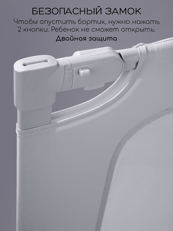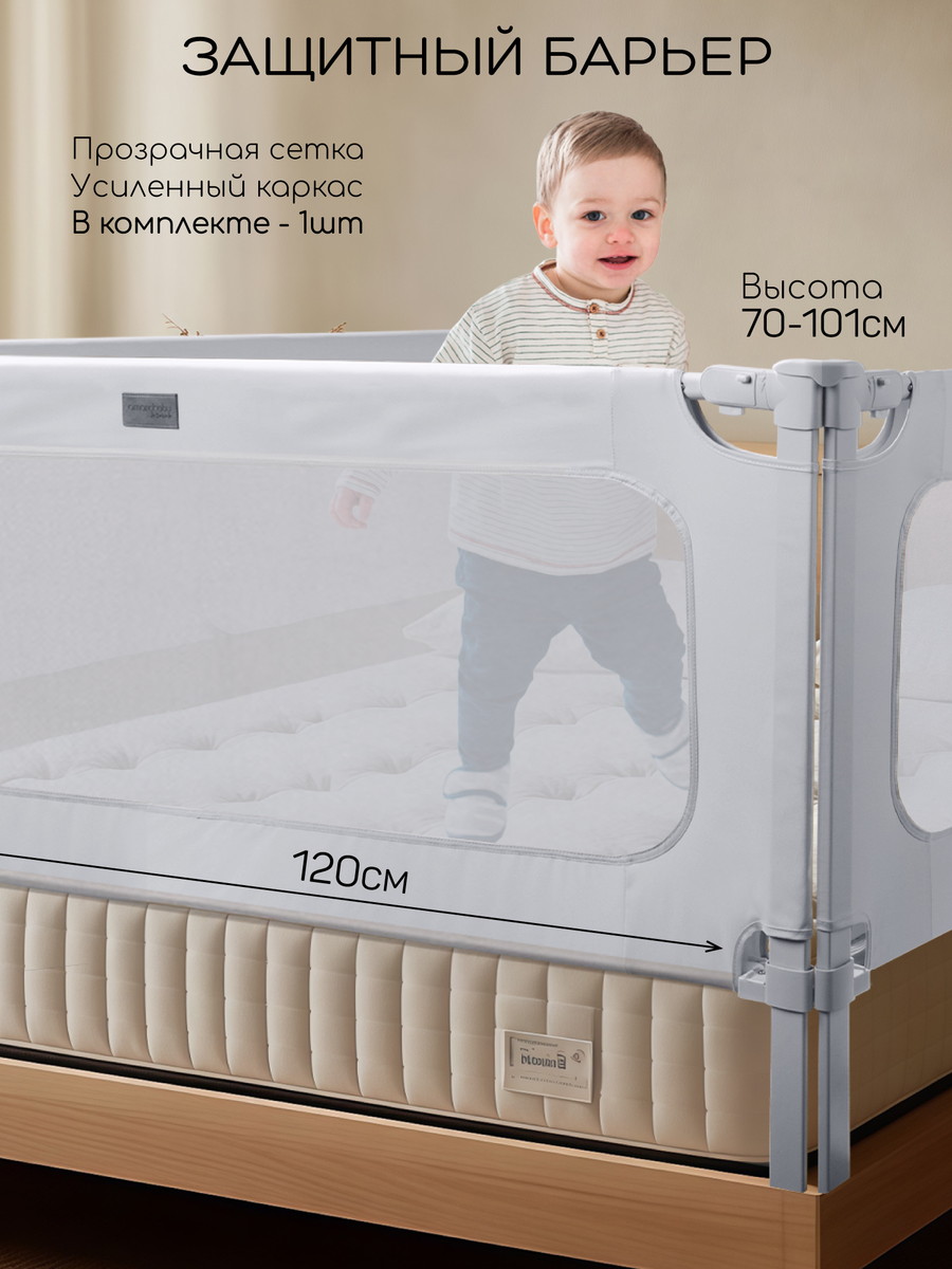 Барьер для кровати Amarobaby Caveo — безопасность и комфорт для вашего малыша! Защитите ребенка от случайного падения с кровати с надежным детским барьером Amarobaby Caveo — идеальным решением для родителей, которые ценят простоту, качество и безопасность. Защитный барьер легко устанавливается за минуты, устойчив к раскачиванию даже при активных движениях малыша, оснащен прочной сеткой и приятной на ощупь тканью, которая не шуршит и не разбудит вашего малыша. Верхняя планка барьера защищена мягким материалом. Надежное крепление и усиленный стальной каркас гарантируют устойчивость, а опущенный бортик не мешает удобно сесть на кровать. Ножки барьера регулируются по высоте и идеально подстраиваются под высоту вашего матраса. Перегородка для детей обеспечит спокойствие вам и защиту ребенку. Защитное ограждение для новорожденных устанавливается под матрас и крепится к каркасу кровати. Модель универсальна, подойдет для мальчиков и девочек. Барьер для детей выполнен в универсальных цветах, подойдет в любой интерьер.