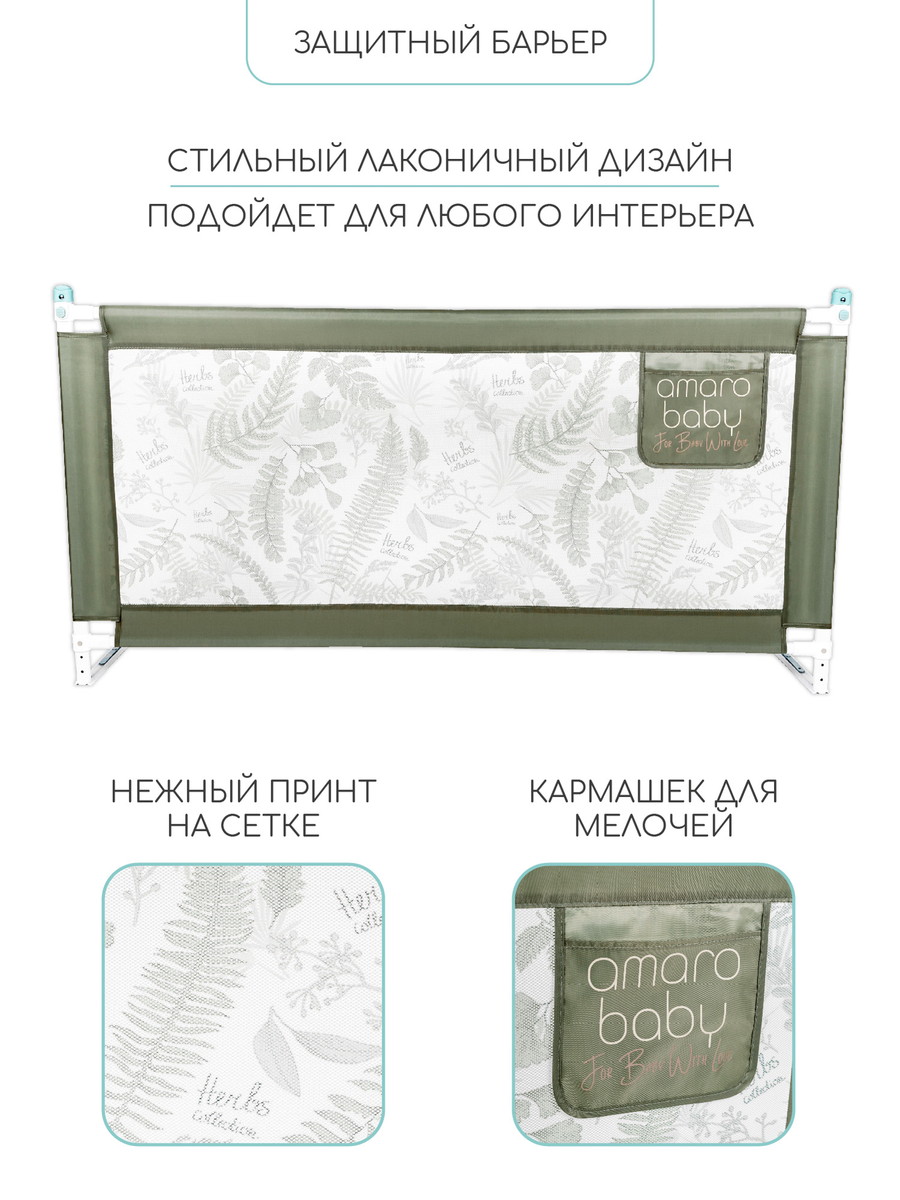 Барьер для кровати AmaroBaby Safety of dreams 180 см оливковый