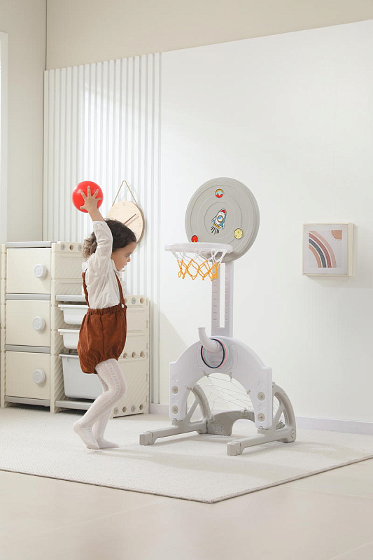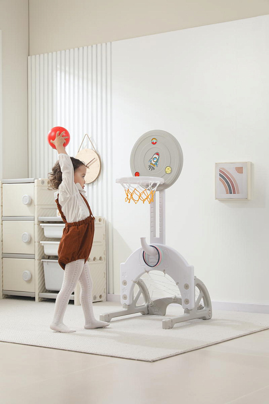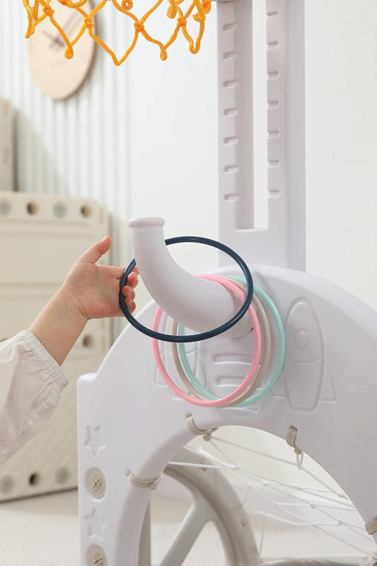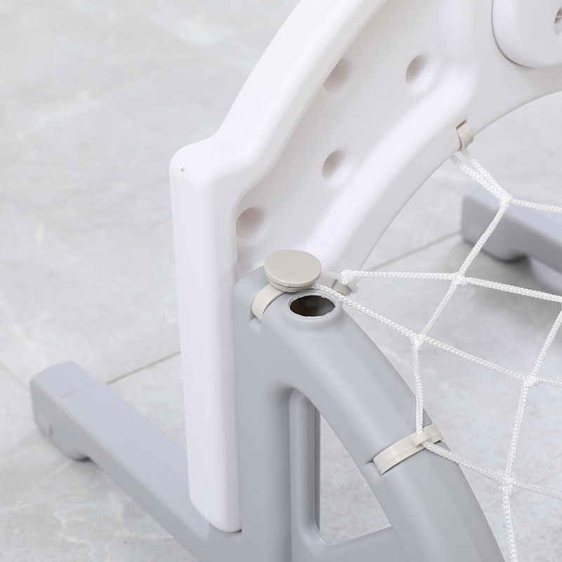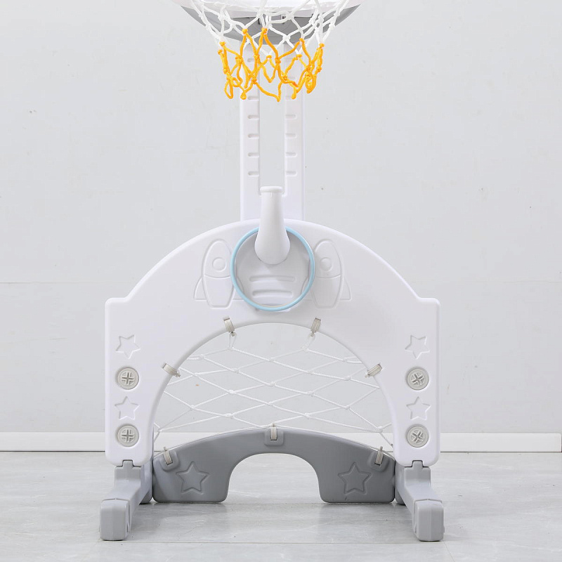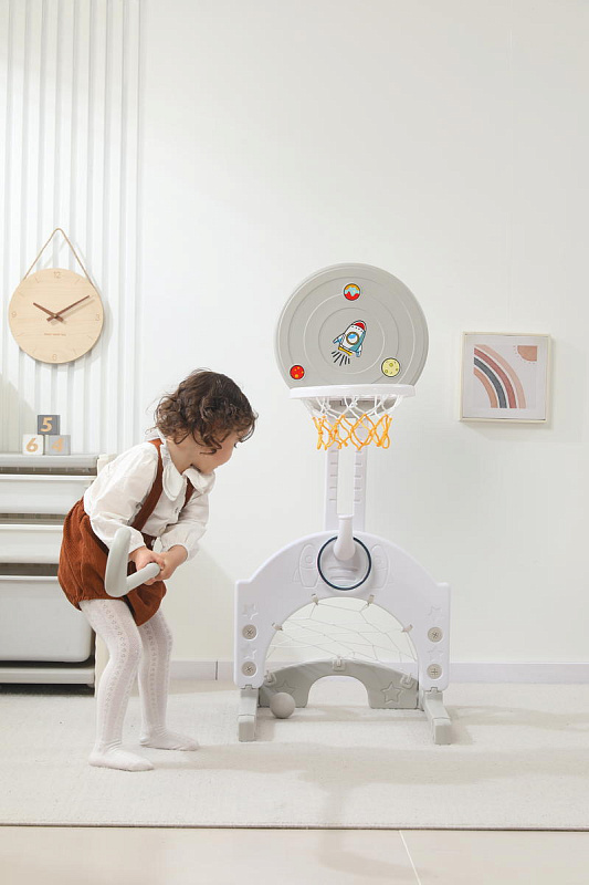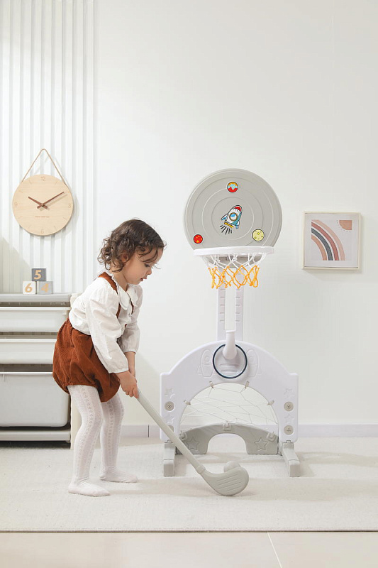 Выполнена стойка из прочных материалов, обеспечивающих надежность и безопасность во время игры. С помощью регулировки высоты стойки, вы сможете подстроить ее под рост вашего малыша.