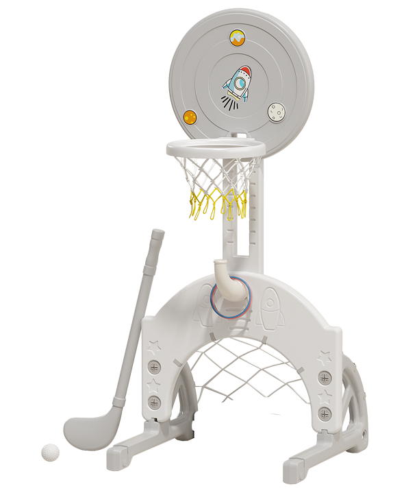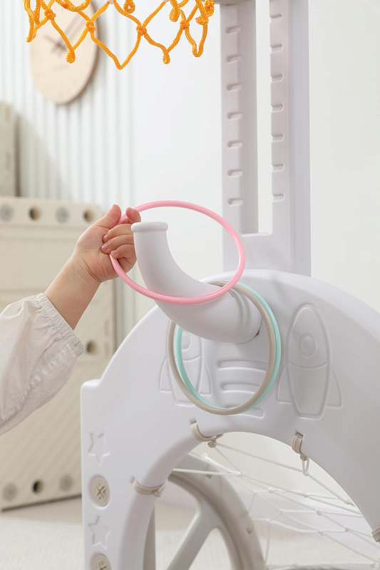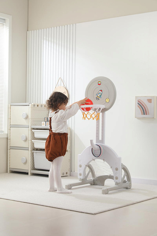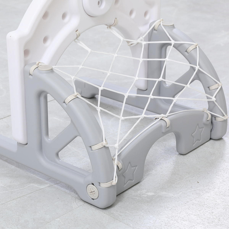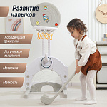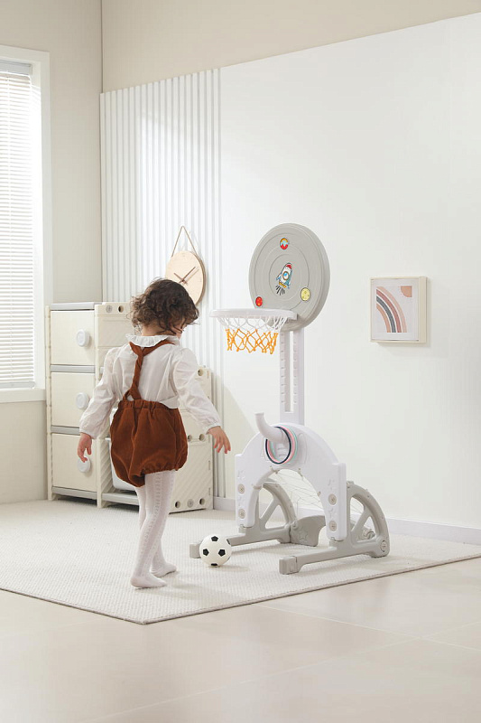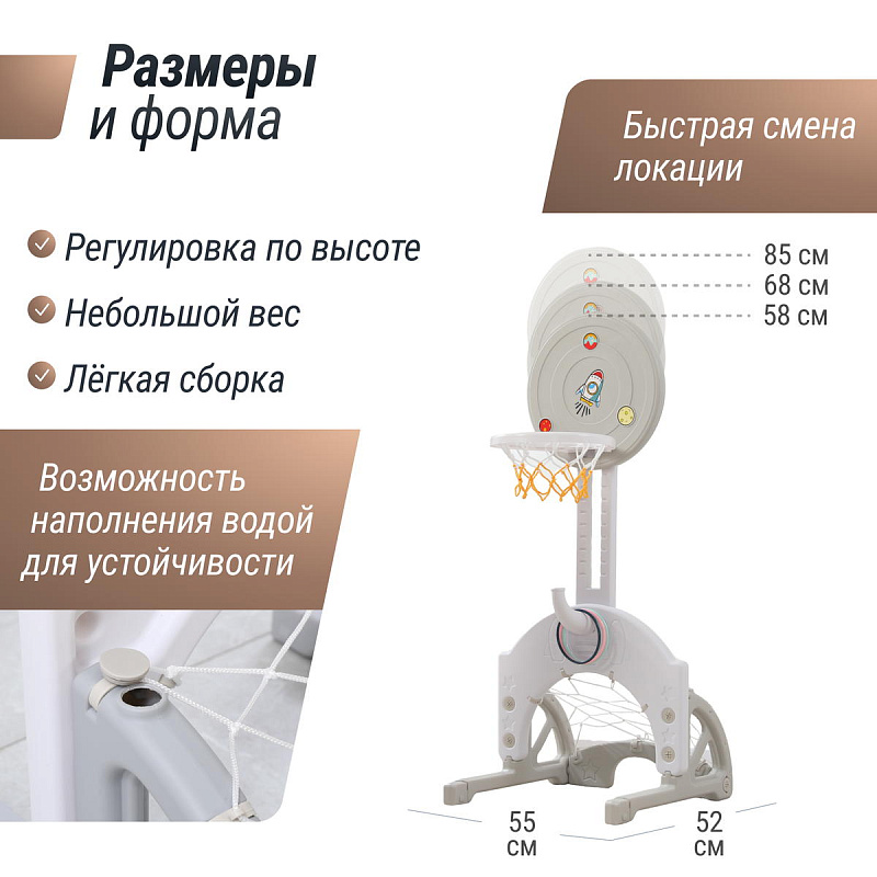 Выполнена стойка из прочных материалов, обеспечивающих надежность и безопасность во время игры. С помощью регулировки высоты стойки, вы сможете подстроить ее под рост вашего малыша.