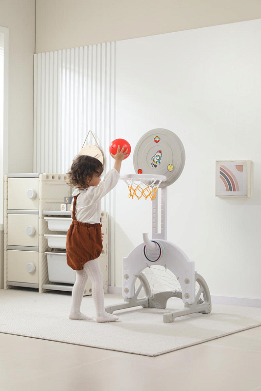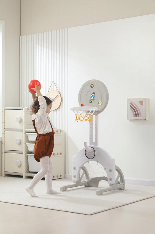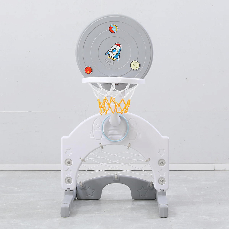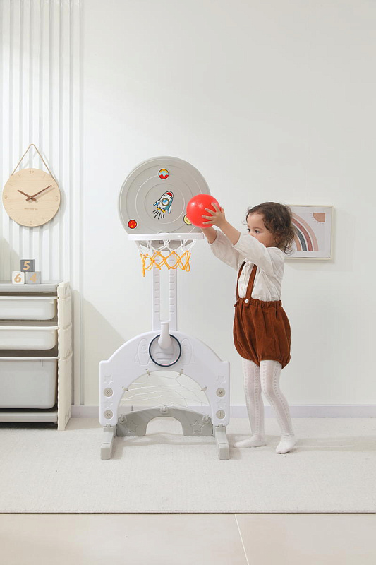 Выполнена стойка из прочных материалов, обеспечивающих надежность и безопасность во время игры. С помощью регулировки высоты стойки, вы сможете подстроить ее под рост вашего малыша.
