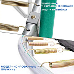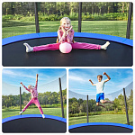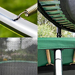 - Защитная сеть входит в комплект всех моделей батутов диаметром более 1,4 м, в данной модели сеть проходит по внутреннему диаметру и разделяет прыжковое полотно от пружин, что обеспечивает дополнительную безопасность ваших детей, она надежно крепится к прыжковому полотну, ВСЕ металлические части батута находятся за пределами досягаемости;