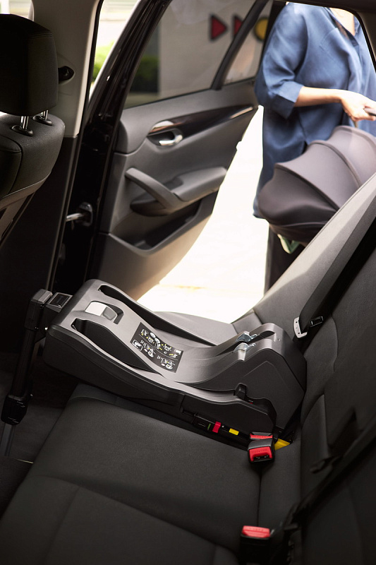 База легко крепится к автомобилю с помощью системы Isofix и стабилизирующей ножки, обеспечивая надёжную фиксацию автокресла. Пометка, меняющая цвет, гарантирует правильную установку сиденья.