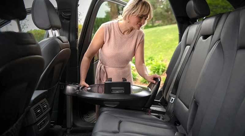BASE Next со встроенной боковой защитой просто и надежно устанавливается, оснащена поворотом на 360° и многоуровневой регулировкой ISOFIX.