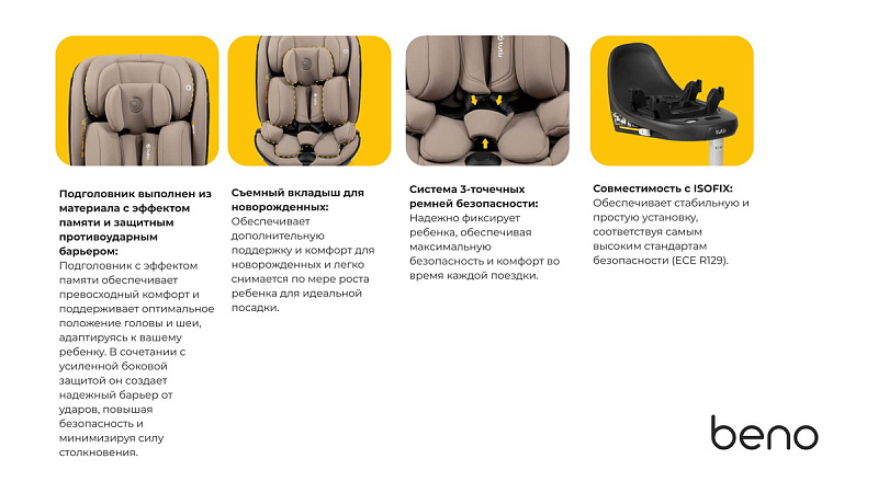 База Beno ISOFIX повышает как безопасность, так и повседневное удобство. Она надежно соединяется с точками крепления ISOFIX автомобиля и оснащена системой Click&Go, позволяющей устанавливать или снимать автокресло одним нажатием кнопки - быстро и без усилий.