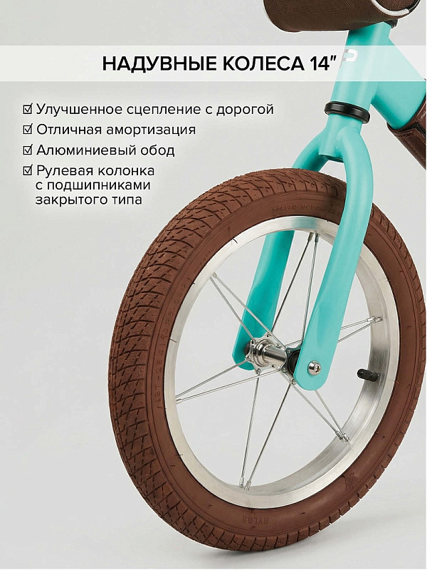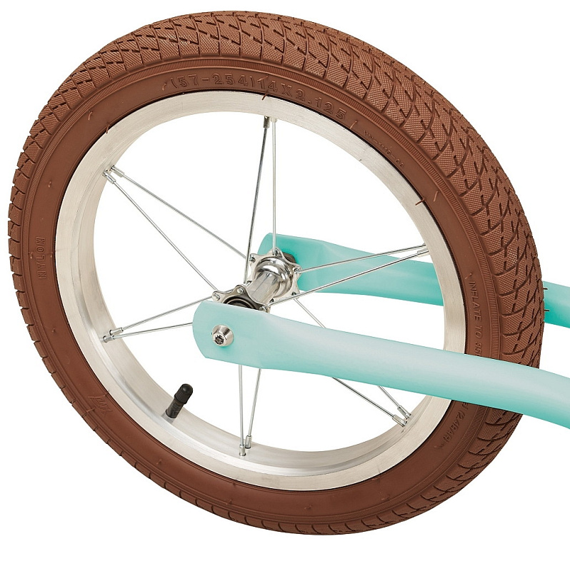 Настоящие колеса для настоящих дорог: Беговел оснащен надувными колесами диаметром 14 дюймов. В отличие от пластика, они обеспечивают отличную амортизацию: ямки, кочки и неровности асфальта не потревожат ребенка. С ним одинаково комфортно кататься и в парке по траве, и по грунтовой дороге.