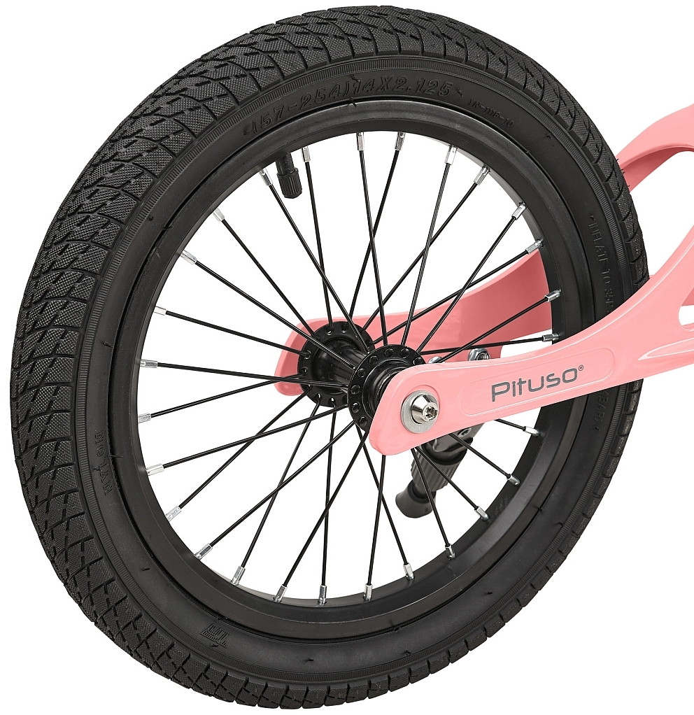 Настоящие колеса для настоящих дорог: Беговел оснащен надувными колесами диаметром 14 дюймов. В отличие от пластика, они обеспечивают отличную амортизацию: ямки, кочки и неровности асфальта не потревожат ребенка. С ним одинаково комфортно кататься и в парке по траве, и по грунтовой дороге.
