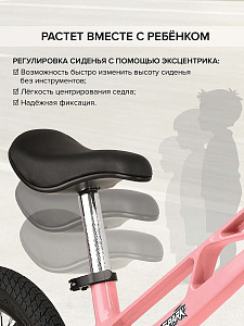 Растет вместе с ребенком: Мы понимаем, как быстро растут дети. Сиденье беговела легко регулируется по высоте в диапазоне от 40 до 47 см, поэтому вы сможете подогнать транспорт под рост именно вашего малыша.