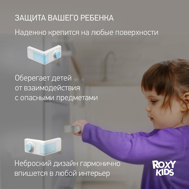 Многофунциональный угловой блокиратор для выдвижных ящиков и шкафов ROXY-KIDS обезопасит малыша от прищемления пальчиков ящиками комода. Он не позволит ребенку проникнуть в «запрещенные» места, где лежит косметика, бытовая химия, лекарства и т.д. Легко крепится на любые типы поверхностей при помощи двухстороннего скотча. Имеет неброский дизайн, поэтому не привлечет дополнительного внимания ребенка.