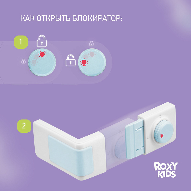 Блокиратор Roxy-Kids угловой для ящика комода, с переключателем, 2 шт