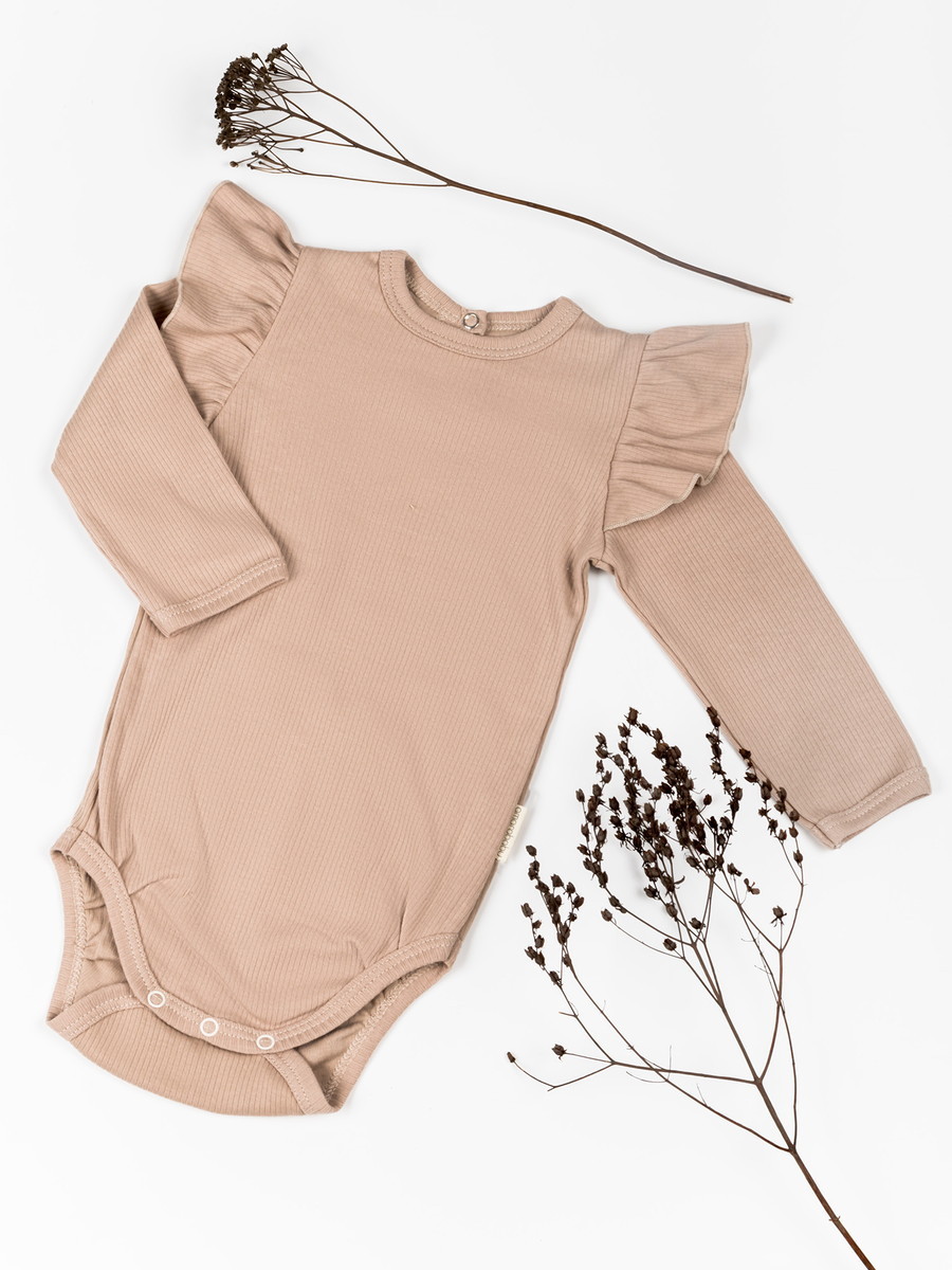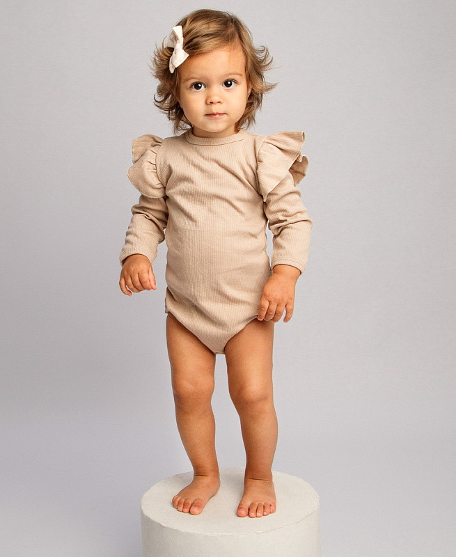 Боди AmaroBaby Fashion с длинным рукавом с рюшами ЧЗ бежевый 56