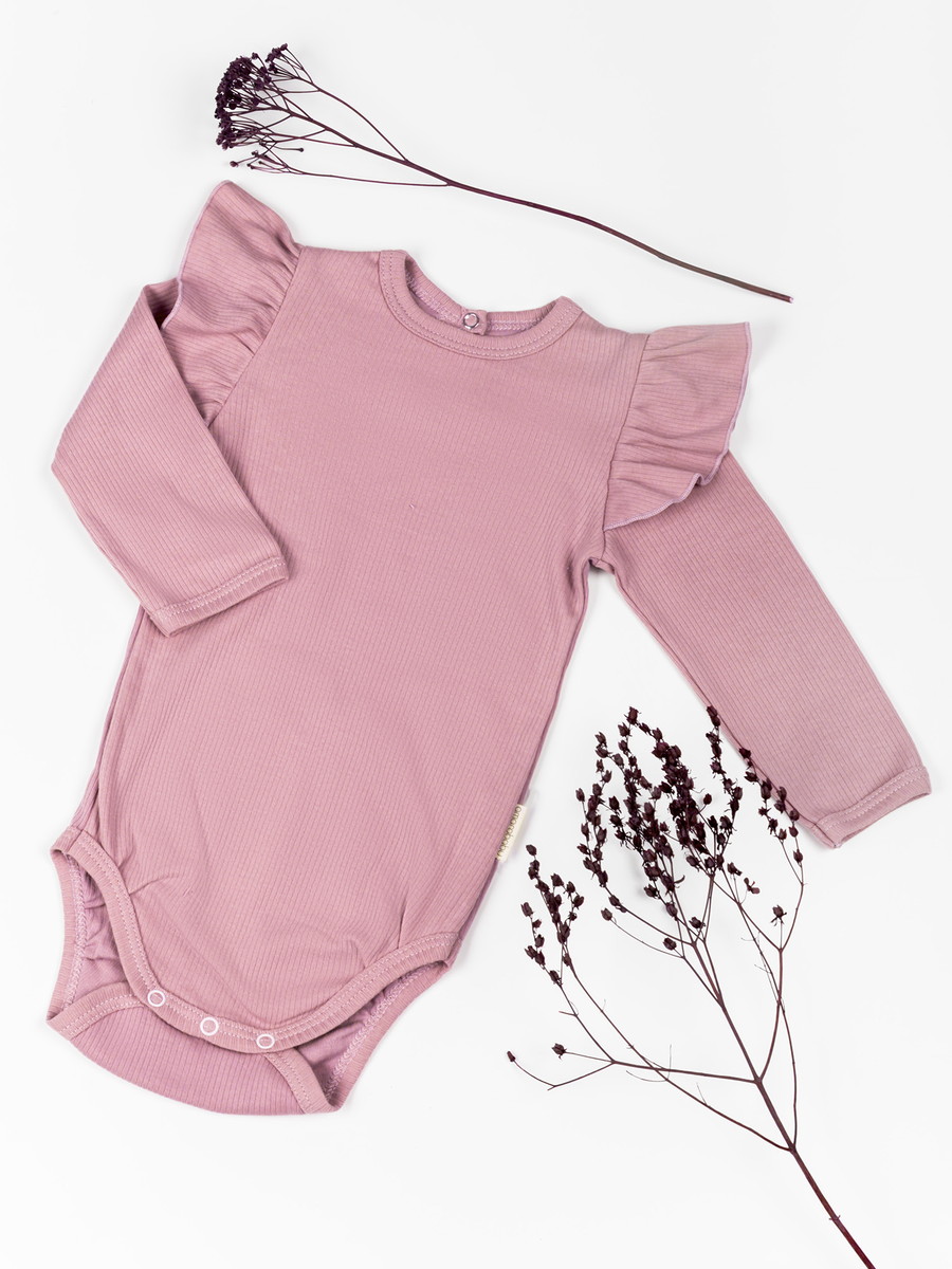 Боди AmaroBaby Fashion с длинным рукавом с рюшами розовый 56