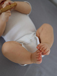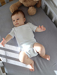 Боди Mjölk [мьёльк] растягивается по фигуре, ребёнку в нём не жарко, он не потеет. В такой одежде можно играть и спать круглый год, поддевать её под комбинезон или спальный мешок. Материал приятный на ощупь, эластичный, гигроскопичный, дышит и не вызывает аллергии. Кнопки расположены значительно выше их привычного месторасположения, что облегчает застёгивание изделия на малыше.