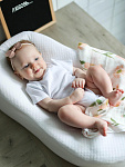 В сопутствующих товарах можно подобрать изделия в комплект с таким же принтом: мягкую шапочку с узелком, двусторонний плед, сет пелёнок в тон или яркий комбинезон.