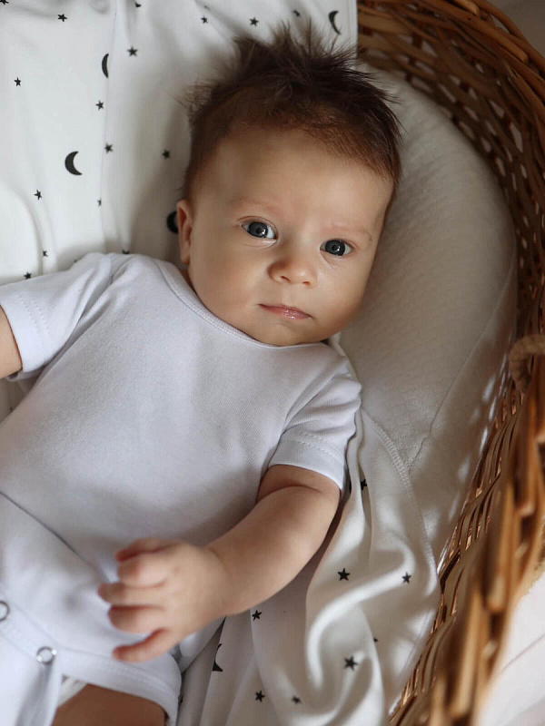 Боди Mjölk [мьёльк] растягивается по фигуре, ребёнку в нём не жарко, он не потеет. В такой одежде можно играть и спать круглый год, поддевать её под комбинезон или спальный мешок. Материал приятный на ощупь, эластичный, гигроскопичный, дышит и не вызывает аллергии. Кнопки расположены значительно выше их привычного месторасположения, что облегчает застёгивание изделия на малыше.