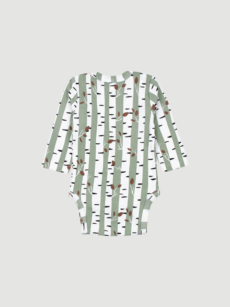 Боди Mjölk [мьёльк] растягивается по фигуре, ребёнку в нём не жарко, он не потеет. В такой одежде можно играть и спать круглый год, поддевать её под комбинезон или спальный мешок. Материал приятный на ощупь, эластичный, гигроскопичный, "дышит" и не вызывает аллергии. Кнопки расположены значительно выше их привычного месторасположения, что облегчает застёгивание изделия на малыше. В сопутствующих товарах можно подобрать изделия в комплект с таким же принтом: мягкую шапочку с узелком, двусторонний плед, сет пелёнок в тон или яркий комбинезон.