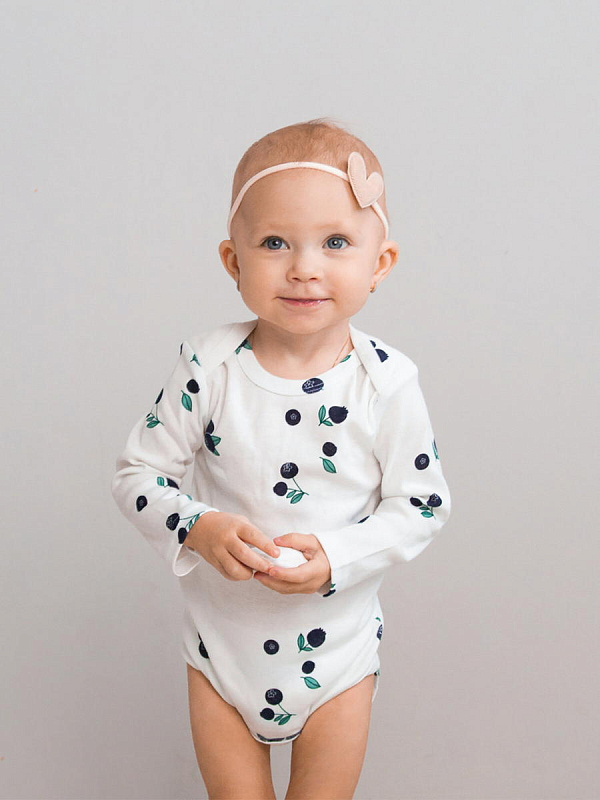 Боди Mjölk [мьёльк] растягивается по фигуре, ребёнку в нём не жарко, он не потеет. В такой одежде можно играть и спать круглый год, поддевать её под комбинезон или спальный мешок. Материал приятный на ощупь, эластичный, гигроскопичный, "дышит" и не вызывает аллергии. Кнопки расположены значительно выше их привычного месторасположения, что облегчает застёгивание изделия на малыше. В сопутствующих товарах можно подобрать изделия в комплект с таким же принтом: мягкую шапочку с узелком, двусторонний плед, сет пелёнок в тон или яркий комбинезон.