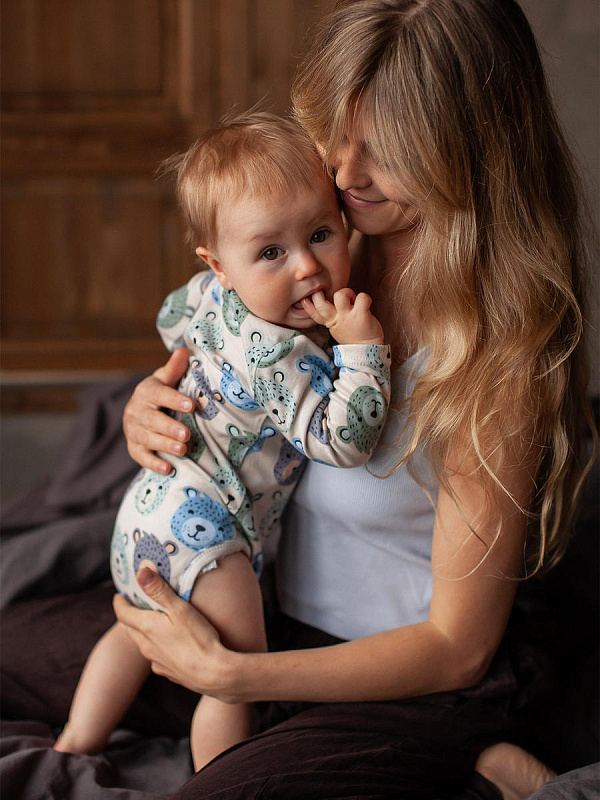 Боди Mjölk [мьёльк] растягивается по фигуре, ребёнку в нём не жарко, он не потеет. В такой одежде можно играть и спать круглый год, поддевать её под комбинезон или спальный мешок. Материал приятный на ощупь, эластичный, гигроскопичный, "дышит" и не вызывает аллергии. Кнопки расположены значительно выше их привычного месторасположения, что облегчает застёгивание изделия на малыше. В сопутствующих товарах можно подобрать изделия в комплект с таким же принтом: мягкую шапочку с узелком, двусторонний плед, сет пелёнок в тон или яркий комбинезон.