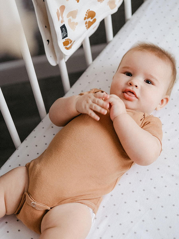 Боди Mjölk [мьёльк] Camel с коротким рукавом выполнен из тонкого 100% трикотажного хлопка. Плетение нитей в этой ткани менее плотное, чем у другой одежды из нашей коллекции, что позволяет комфортно использовать боди в качестве первого слоя.