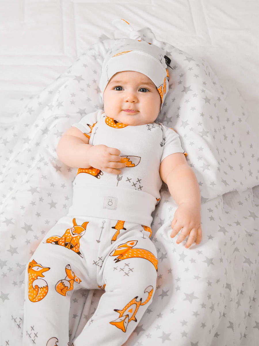 Боди Mjölk [мьёльк] растягивается по фигуре, ребёнку в нём не жарко, он не потеет. В такой одежде можно играть и спать круглый год, поддевать её под комбинезон или спальный мешок. Материал приятный на ощупь, эластичный, гигроскопичный, "дышит" и не вызывает аллергии. Кнопки расположены значительно выше их привычного месторасположения, что облегчает застёгивание изделия на малыше. В сопутствующих товарах можно подобрать изделия в комплект с таким же принтом: мягкую шапочку с узелком, двусторонний плед, сет пелёнок в тон или яркий комбинезон.