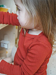 Боди Mjölk [мьёльк] Paprika с длинным рукавом выполнен из тонкого 100% трикотажного хлопка. Плетение нитей в этой ткани менее плотное, чем у другой одежды из нашей коллекции, что позволяет комфортно использовать боди в качестве первого слоя.