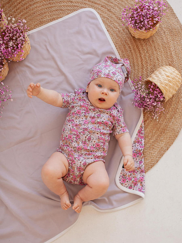 В сопутствующих товарах можно подобрать изделия в комплект с таким же принтом: мягкую шапочку с узелком, двусторонний плед, сет пелёнок в тон или яркий комбинезон.