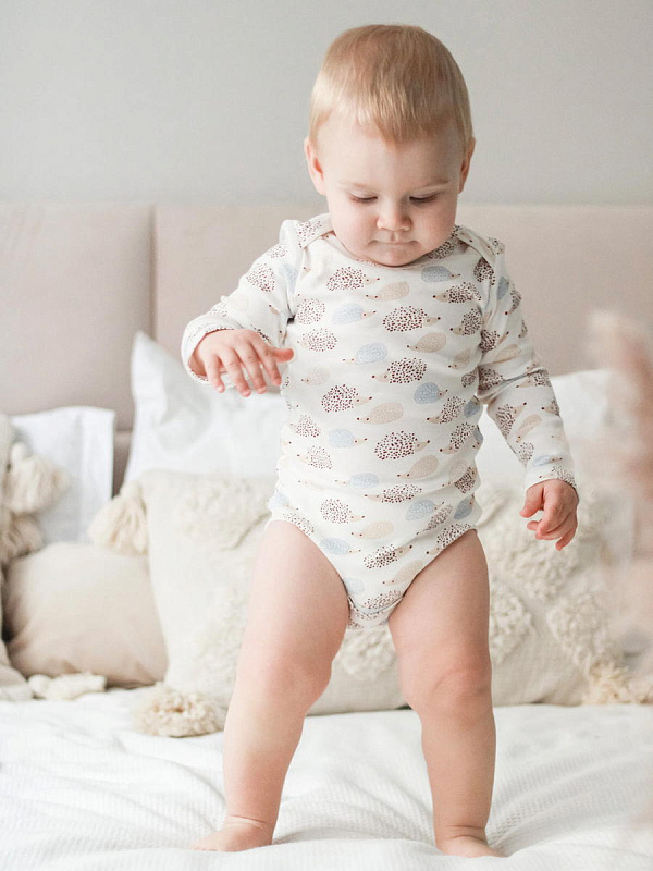 Боди Mjolk Ёжики на экрю с длинным рукавом 56