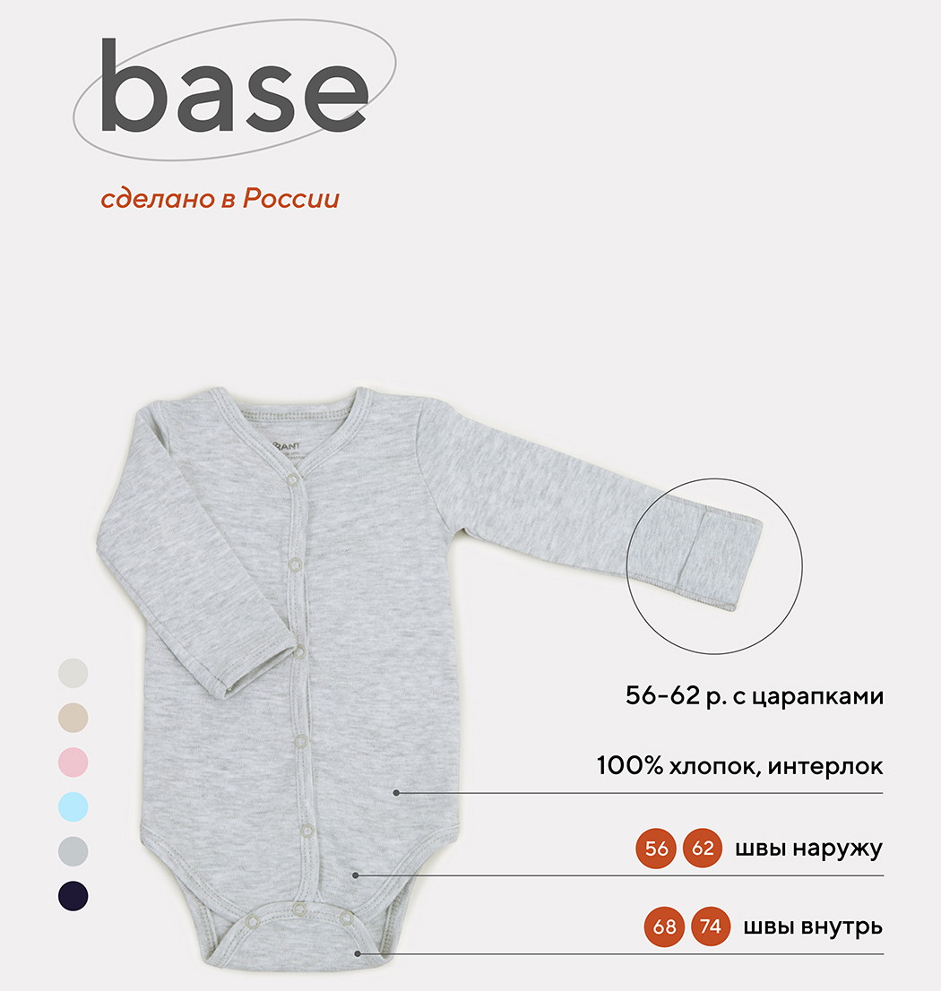 Боди Rant Base с длинным рукавом на кнопках 7169/7369 Св-серый меланж 74