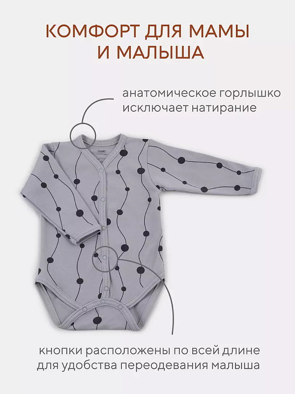 - Выполнена модель швами наружу, чтобы не раздражать нежную кожу. Изделие дополнено царапками - малыш не поранит себя внезапно отросшими ноготочками. Благодаря кнопочкам, расположенным по всей длине, вам будет комфортно переодевать своего маленького ангелочка