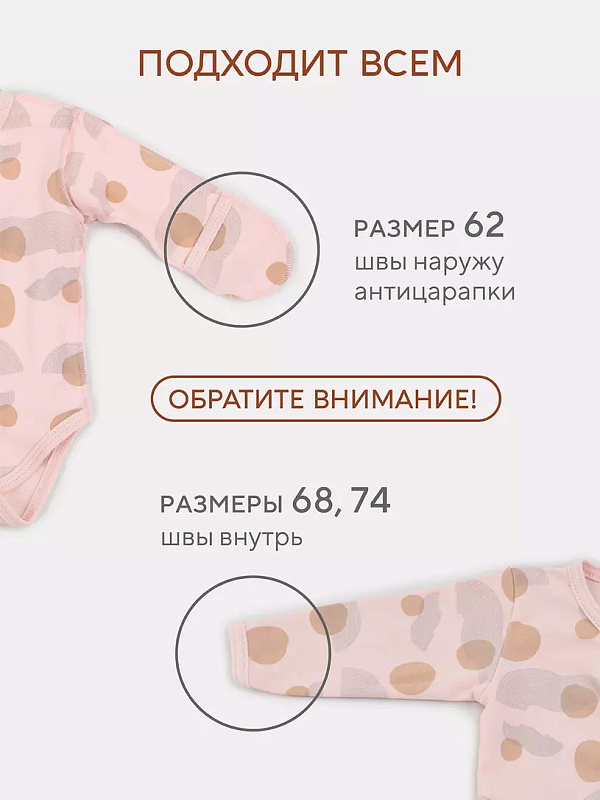 - Выполнена модель швами наружу, чтобы не раздражать нежную кожу. Изделие дополнено царапками - малыш не поранит себя внезапно отросшими ноготочками. Благодаря кнопочкам, расположенным по всей длине, вам будет комфортно переодевать своего маленького ангелочка