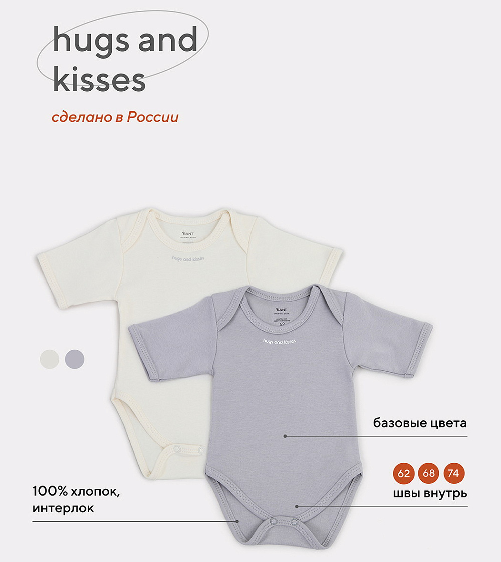 - Свежая коллекция Hugs and kisses покажет всю вашу нежность и заботу. Актуальные однотонные расцветки, лаконичный дизайн, качественная фурнитура в тон и хлопок премиум класса (интерлок-пенье)