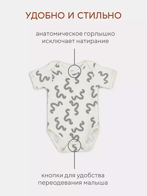 - Для отпуска или теплых летних дней малышу обязательно пригодятся боди с коротким рукавом. Благодаря широкой горловине, выполненной внахлест, эти модели можно снимать как традиционно, так и сверху вниз. Для чего это нужно? Например, если подгузник протек, то удобно снять боди именно таким способом, - чтобы не испачкать малыша еще больше