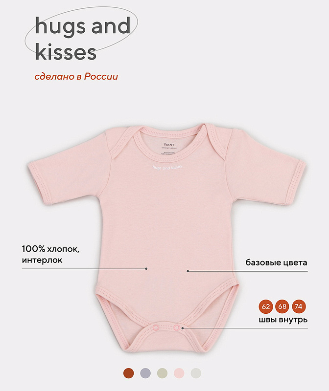 - Свежая коллекция Hugs and kisses покажет всю вашу нежность и заботу. Актуальные однотонные расцветки, лаконичный дизайн, качественная фурнитура в тон и хлопок премиум класса (интерлок-пенье)