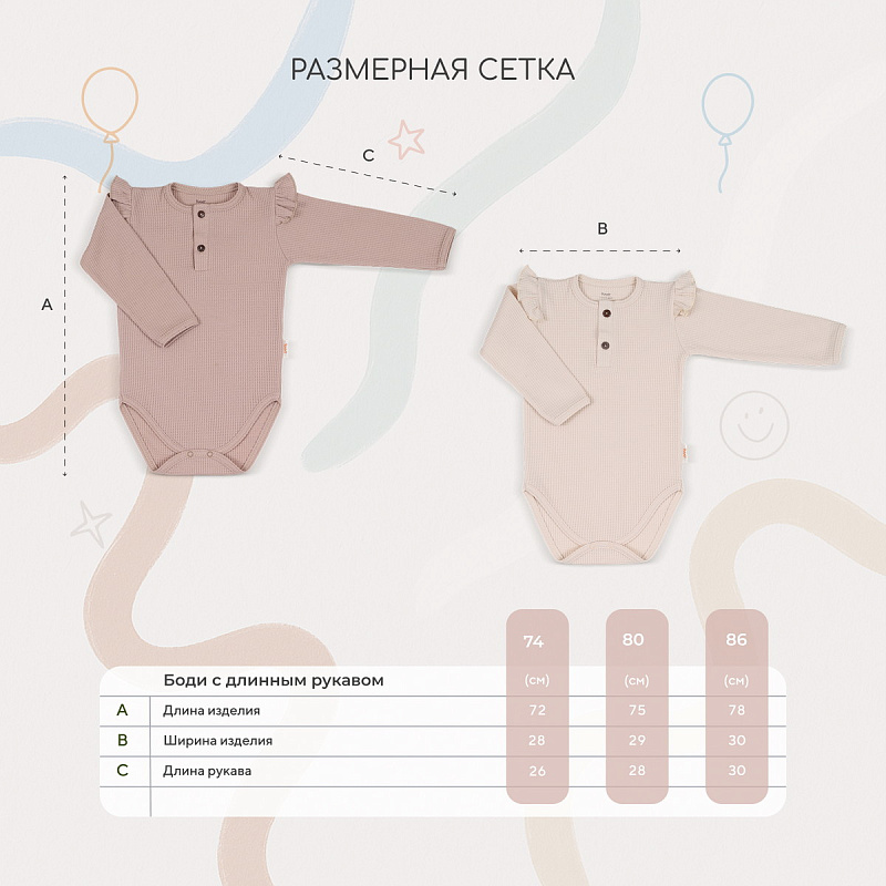 Боди Rant Waffy с длинным рукавом для девочки 5-92 Milk-Latte 74