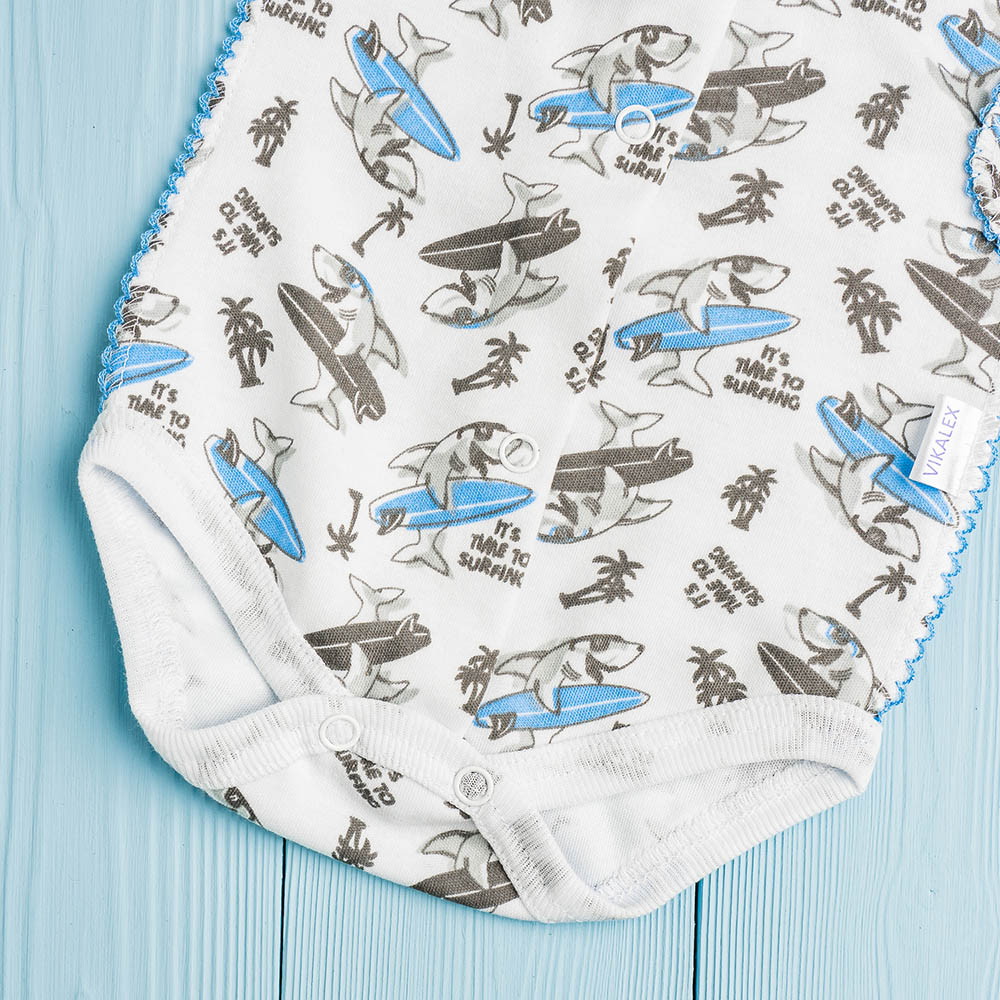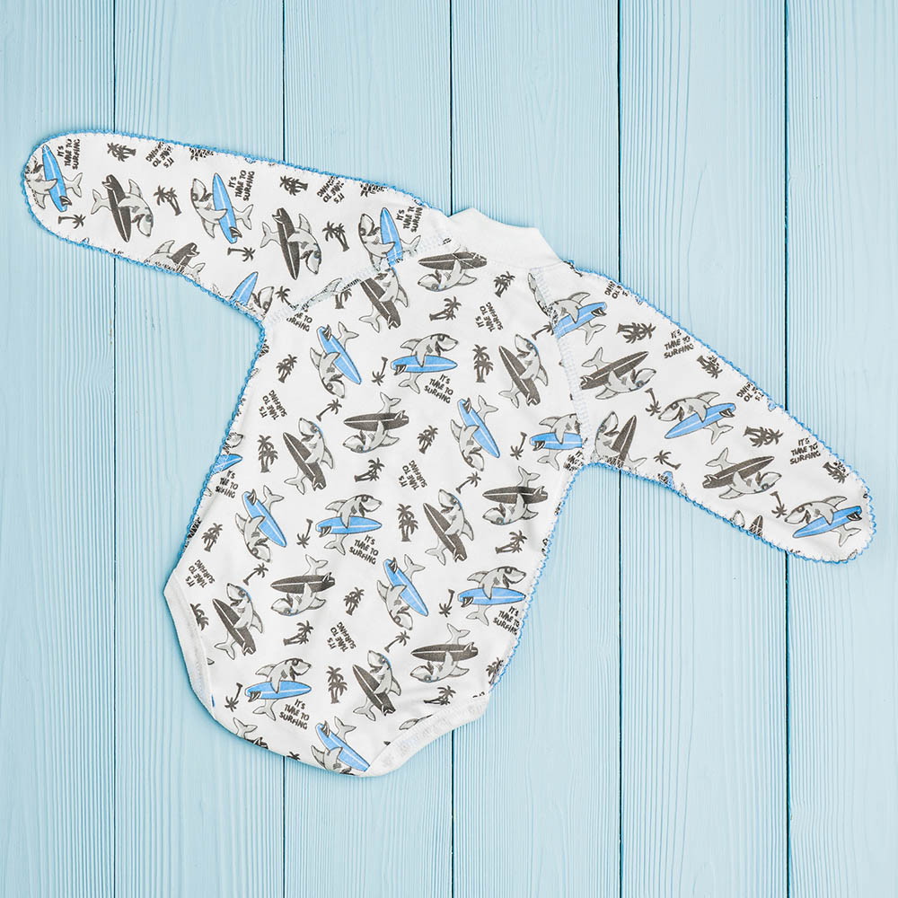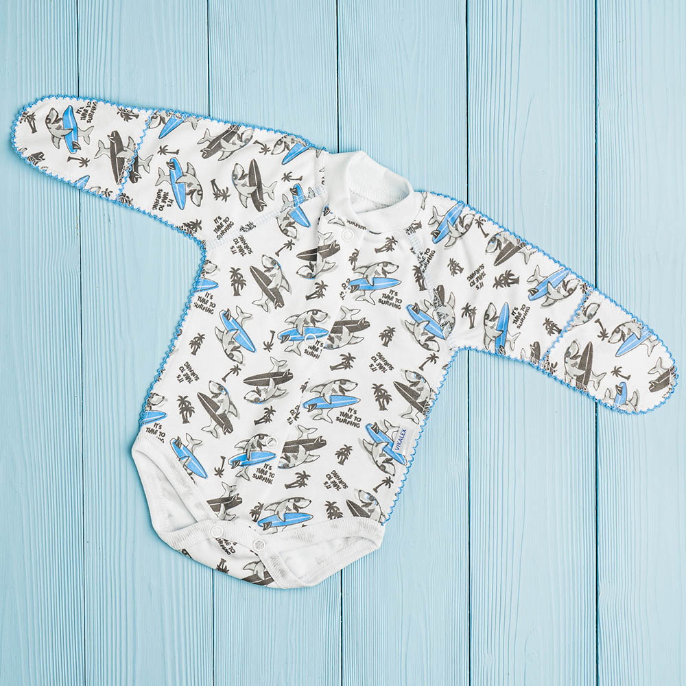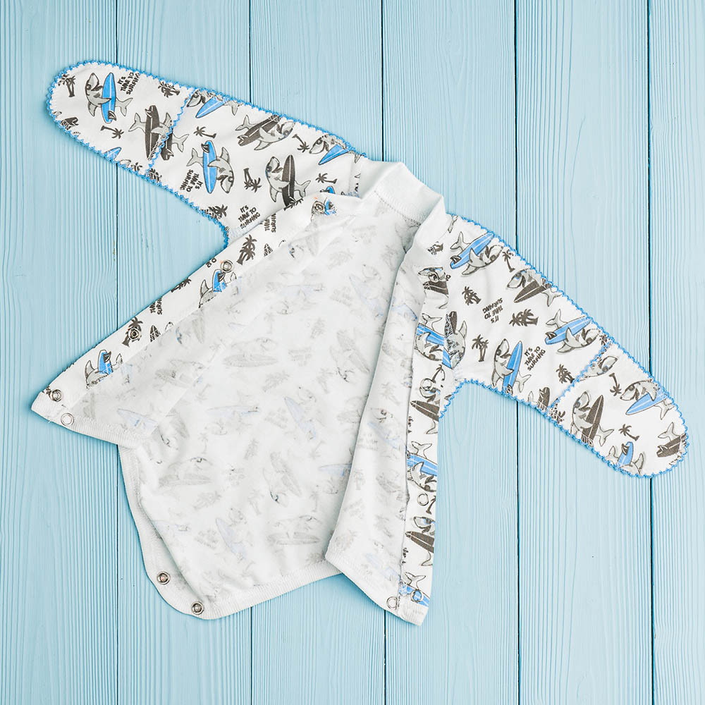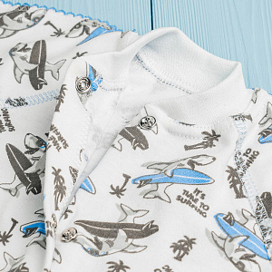 Удобное боди легко надеть на ребёнка благодаря застёжке по всей длине. Модель со швами наружу, которые не будут доставлять малышу неудобств. Проймы для ног отделаны кантом. Изделие из натуральной дышащей ткани.
